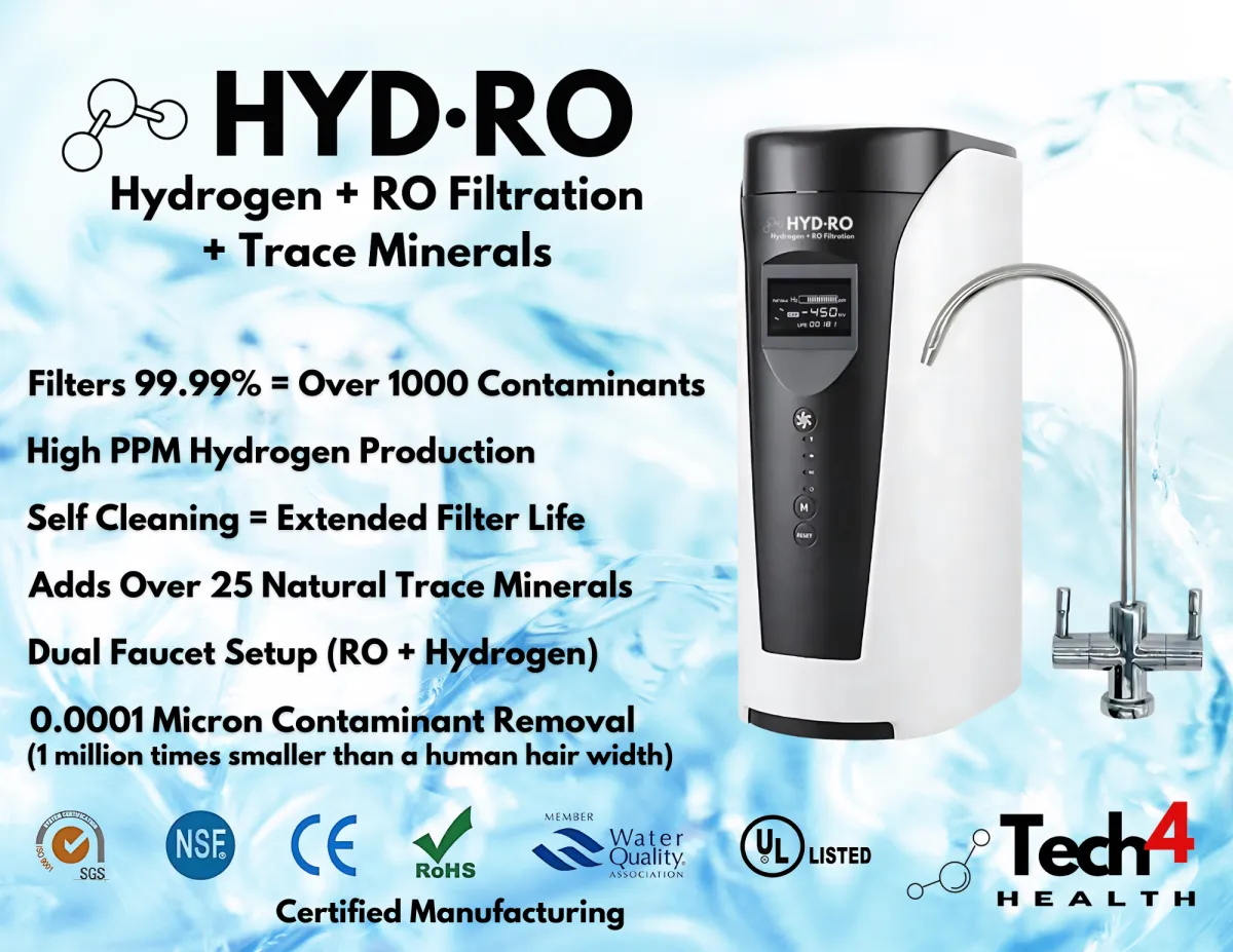 2-in-1 technology: Advanced RO filtration removes heavy metals, microplastics, PFAS, pharmaceuticals, chlorine, and more.